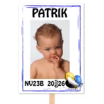 När ni valt er design på föregående sida så kommer ni se knappen “Anpassa”, här inne kommer ni få redigera er skylt. Där kommer ni se temat ni valt och förinstallerad text där ni kan skriva vad ni vill, förstora/förminska, flytta, ändra typsnitt och mycket annat. Ni kommer dessutom välja er bild ni vill ha på Studentskylten. Ladda upp er bild och anpassa den till skylten.